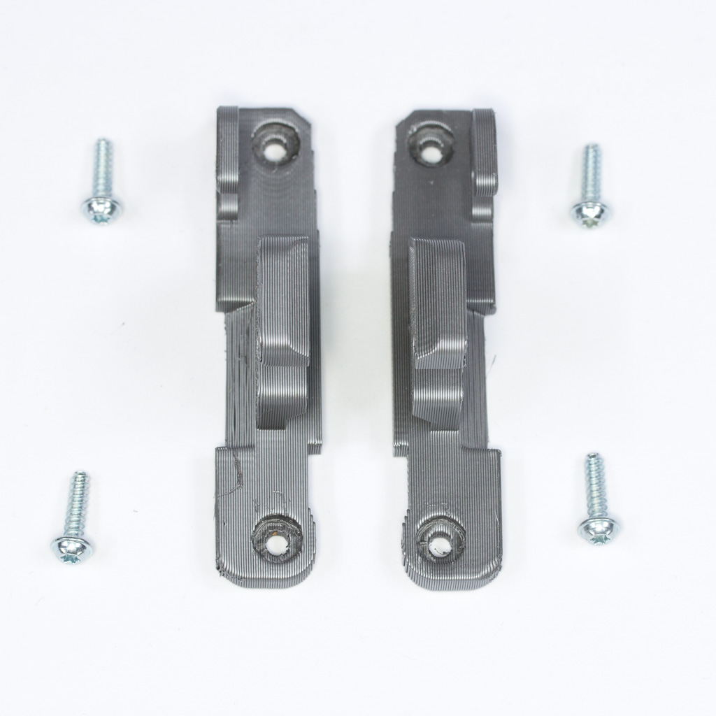 Neue Version Herbst 2024: aufgrund von Kundenrückmeldungen nach dem die Halter durch die Senkkopfschrauben bei der Montage aufgeplatzt sind, haben wir die Befestigung geändert. Der 3D-Druck ist immer empfindlich auf Kerbwirkung zwischen den Schichten, also haben wir zylindrische Senkungen verwendet und liefern die passenden Flachkopfschrauben mit. Sie benötigen dann einen Torx10-Schraubendreher zur Montage.