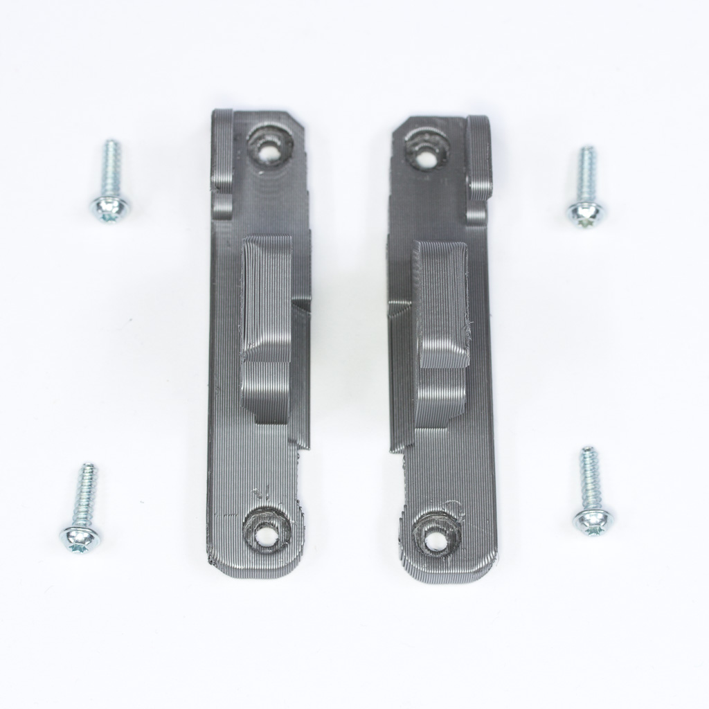 Neue Version Herbst 2024: aufgrund von Kundenrückmeldungen nach dem die Halter durch die Senkkopfschrauben bei der Montage aufgeplatzt sind, haben wir die Befestigung geändert. Der 3D-Druck ist immer empfindlich auf Kerbwirkung zwischen den Schichten, also haben wir zylindrische Senkungen verwendet und liefern die passenden Flachkopfschrauben mit. Sie benötigen dann einen Torx10-Schraubendreher zur Montage.