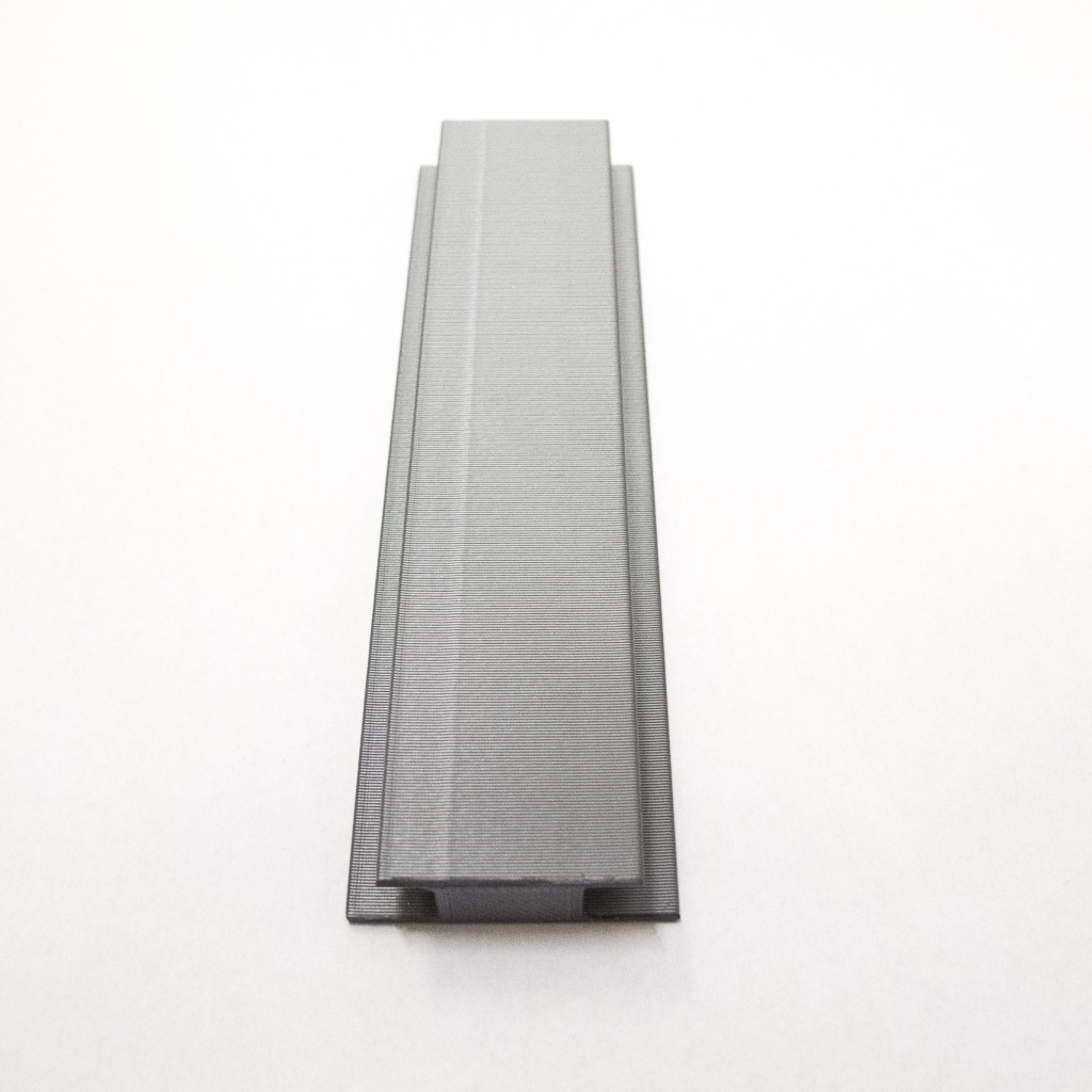 3D-gedruckter Sockelverbinder für ALNO Sockelblenden 7 mm stark. Da es eine verstärkte Nachfrage nach den Profilen für die 7 mm starke ALNO Sockelblende gibt handelt es sich um einen Pilotversuch diese dann mit 3D-Druck nachzufertigen. Die ursprünglichen, an die Holzfarbe angepassten Kunststofffarben sind leider nicht erhältlich, zur Auswahl stehen silber, weiß und schwarz. An der fertigen Ecke sind aber herstellungsbedingt die Druckschichten erkennbar. Der ursprüngliche, gerade oder 135 Grad geknickte Verbinder ist häufig an der Knickstelle gerissen, deshalb ist mein nachkonstruiertes Produkt in einem fixen Winkel.