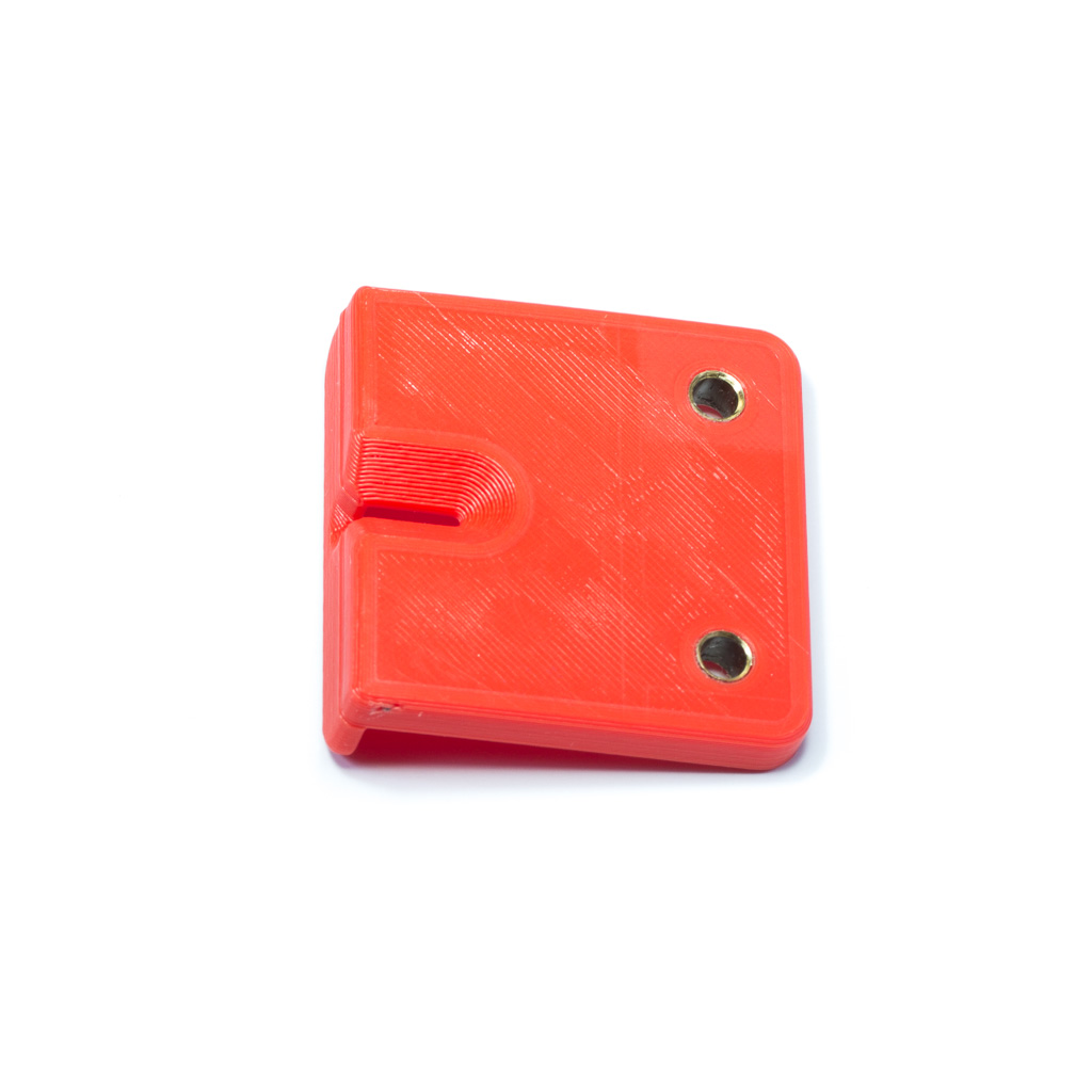 Die von uns gefertige Bohrlehre hat einen Sichtschlitz für den Markierungsstrich und kann problemlos per Schraubzwinge sicher geklemmt werden. Die Bohrlöcher sind mit Messing verstärkt.